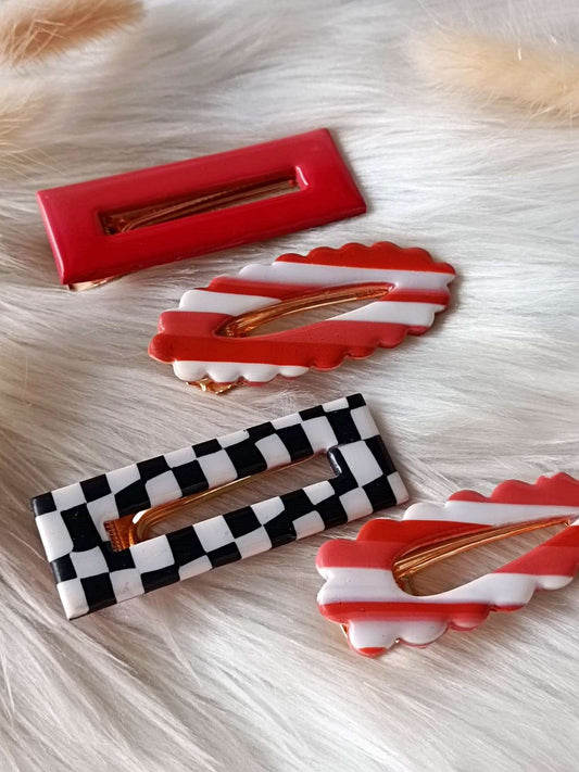 Discover the artistry of our handmade polymer clay barrettes, adorned with exquisite tarnish-free metal accents. Each unique piece is meticulously crafted for style and durability, providing a touch of elegance to your hair accessories collection. Shop now for one-of-a-kind barrettes that seamlessly blend craftsmanship, creativity, and lasting beauty