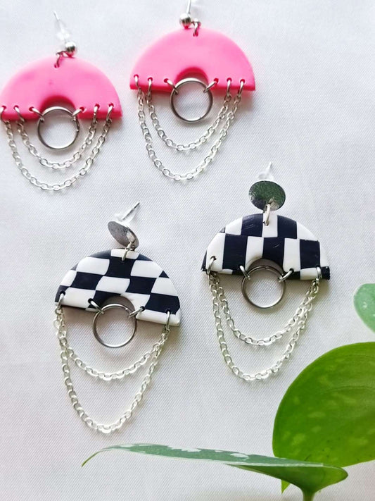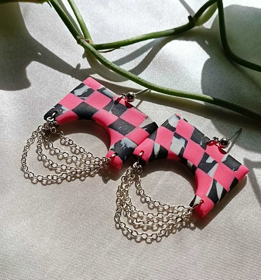 Chained black and white checkered Polymer clay earrings - SEPTUM