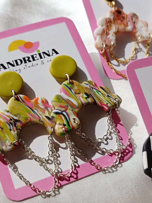 Chained colorful Polymer clay earrings - Salome- Colorful - Handmade Polymer Clay Earrings - Abstract earrings- Green earrings