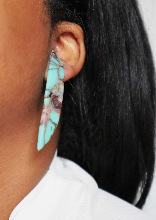 Elegant Dagger-Shaped Polymer Clay Stud Earrings - Bijoux faits main en France – Créations artisanales uniques | Andreina Clay
