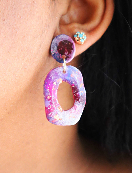 Celestial Treasures- Asteria- Cosmos Collection Polymer Clay Earrings - Bijoux faits main en France – Créations artisanales uniques | Andreina Clay