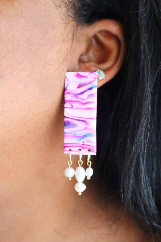 Elegant Polymer Clay Stud Earrings with Pearls - Bijoux faits main en France – Créations artisanales uniques | Andreina Clay