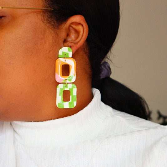 "Zesty Muse" -MALACHIA- Handcrafted Polymer Clay Earrings for Spring Chic and Colorful Accessories - Bijoux faits main en France – Créations artisanales uniques | Andreina Clay