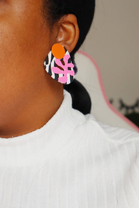 Matisse-Inspired "Coral Fusion" Polymer Clay Earrings - Perla - Bijoux faits main en France – Créations artisanales uniques | Andreina Clay