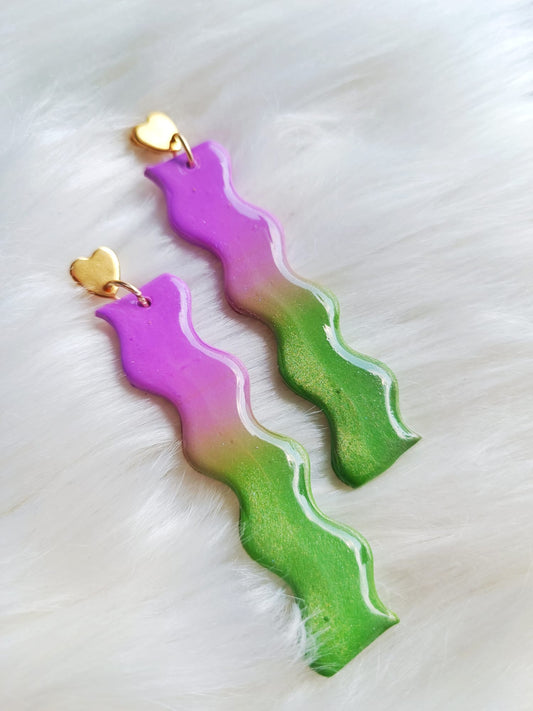 Green and Purple gradient earrings - Polymer clay earrings - Femi