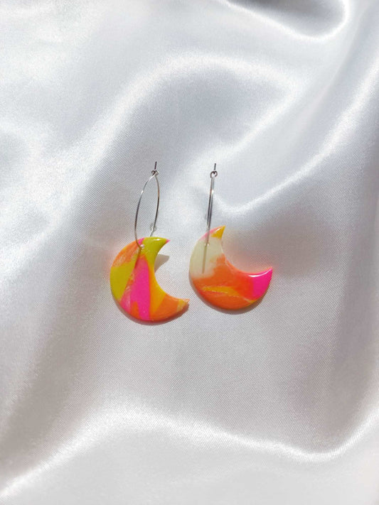 Marble Crescent Moon hoop earrings ~ Polymer clay earrings