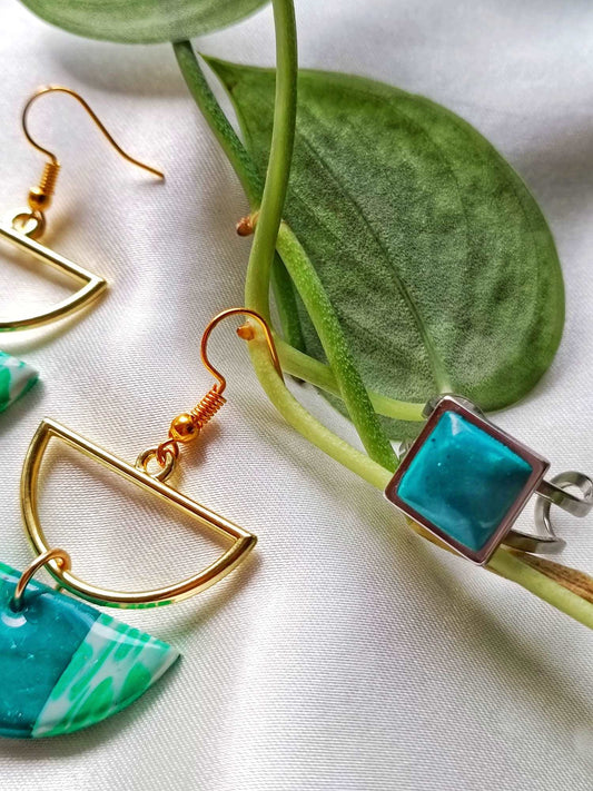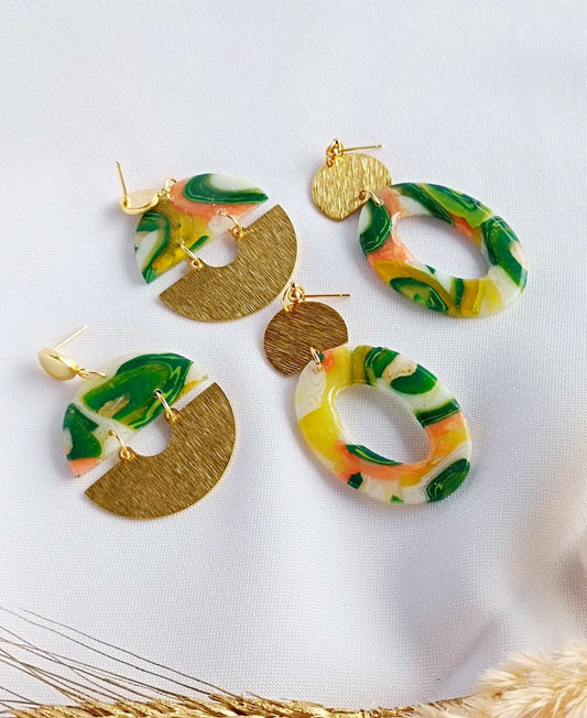 Coated marble (Emerald green marble) - Summer Polymer Clay Earrings