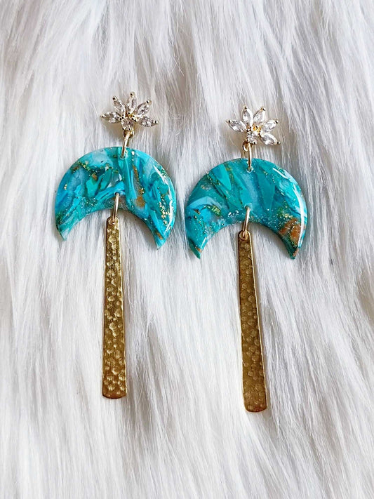 Moonlit Magic: Polymer Clay Crescent Moon Earrings with Raw Brass and Stainless Steel - Whimsical Crescent Moon Polymer Clay Earrings