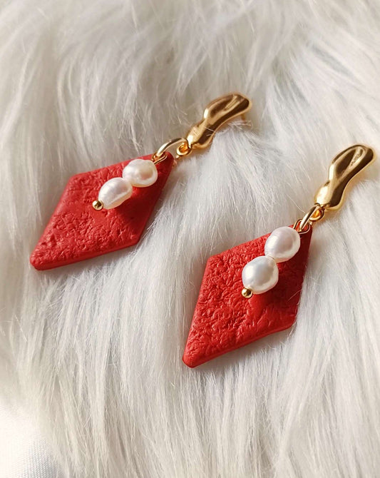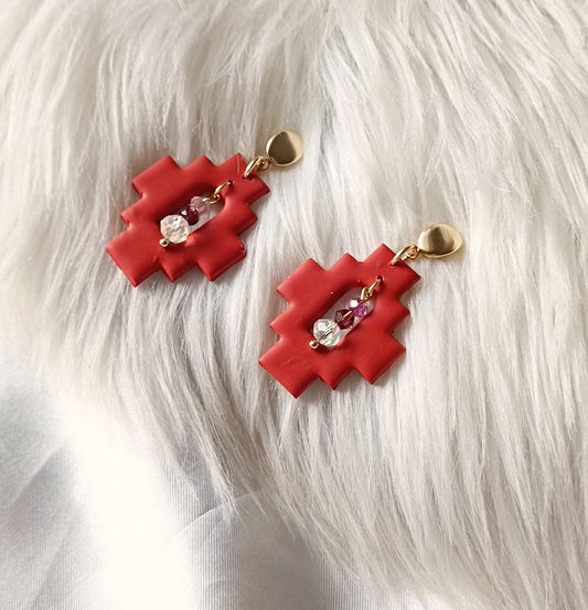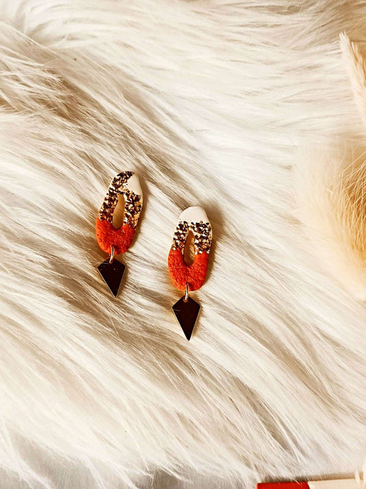 Terracotta Polymer clay earrings - KISSA - Boho polymer clay earrings - Clay earrings with charms - Statement studs