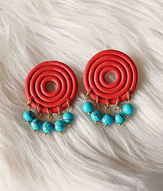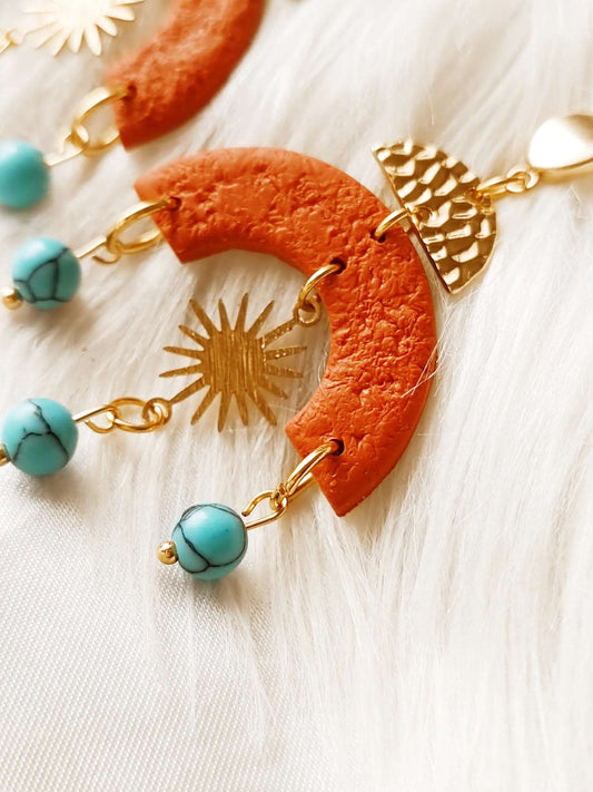 Terracotta Polymer clay earrings - ZAINAB - Boho polymer clay earrings - Clay earrings with TURQUOISE beads