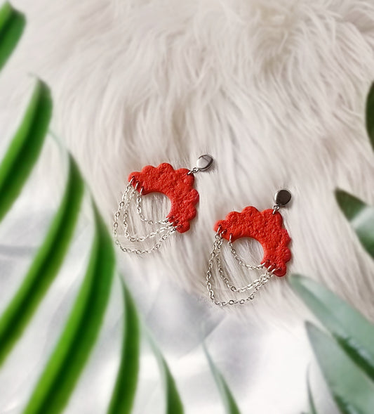 Chained terracotta Polymer clay earrings - Orpah- Textured and chained earrings - Stainless steel chain